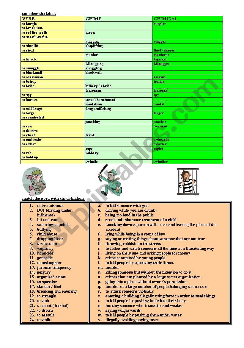 Crime Vocabulary Crossword Wordsearch Unscramble Letters Esl Worksheet By Tukany3